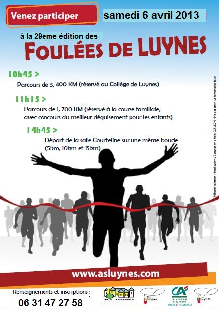 Voir les photos des foulées 2012 : https://picasaweb.google.com/cdchs37/Luynes?authuser=0&feat=directlink